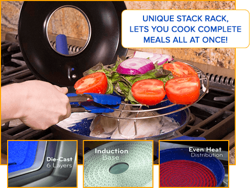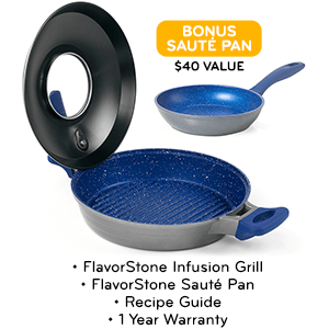 With its raised surface ridges, the InfusionGrill™ lifts your food up from the bottom of the pan allowing fat and grease to drip away, so your meals aren’t soaking in grease.
