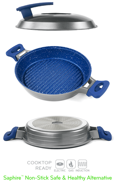 Plus, the sapphire-based non-stick surface requires no extra cooking oils or butter, helping you lose weight by cutting calories – not to mention making clean up a breeze with simple one-swipe cleaning.