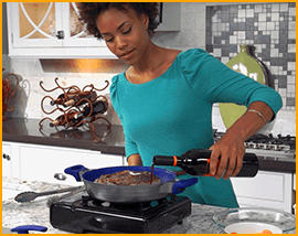 Simply add liquids like wine, juices, sauces, salad dressing, and even beer into the pan's FlavorChannel to infuse into your dish! Let your flavor imagination run wild as the FlavorStone InfusionGrill™ stovetop cooker brings that great outdoor BBQ taste indoors for you to enjoy all year round.