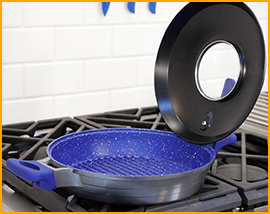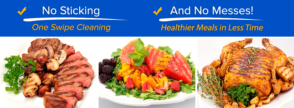 With its raised surface ridges, the InfusionGrill™ lifts your food up from the bottom of the pan allowing fat and grease to drip away, so your meals aren’t soaking in grease.